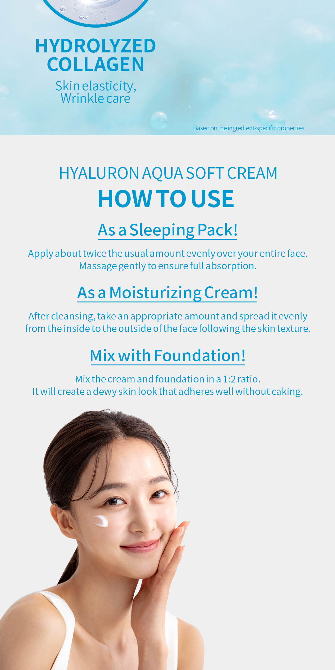 含透明質酸, 膠原蛋白和維他命, 質感幼滑令肌膚保持水潤和彈性, 亦可作睡眠面膜和混合基底液一同使用