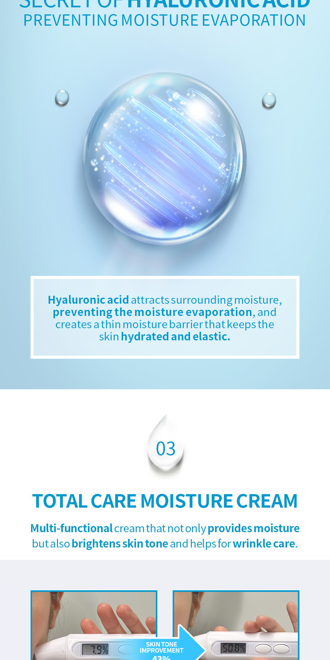 - 保濕霜: 潔面後取適量塗於面上輕拍至完全吸收
