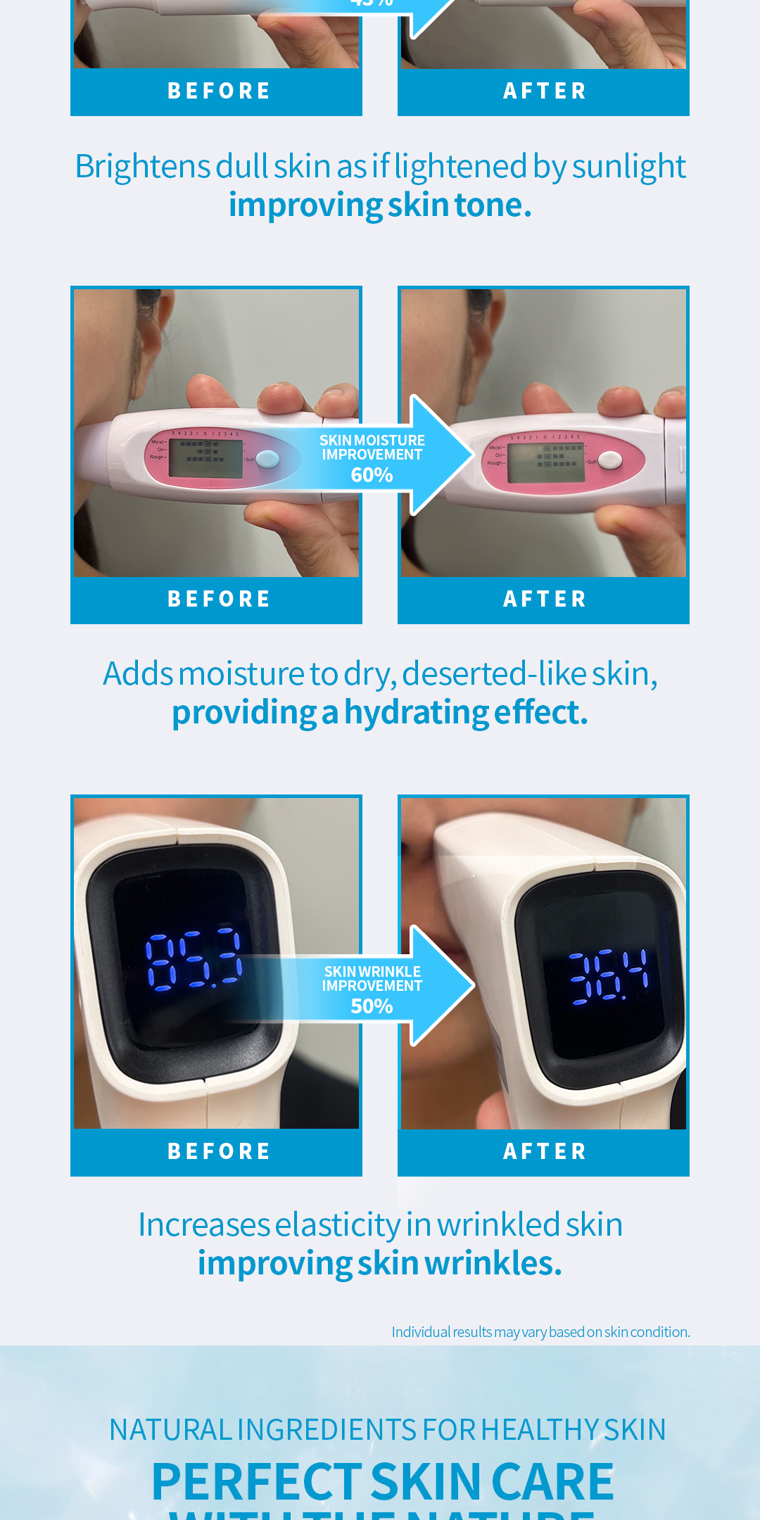 - 含透明質酸, 膠原蛋白和維他命, 為肌膚提供豐富水份和營養, 令皮膚變光亮, 緊緻和有彈性